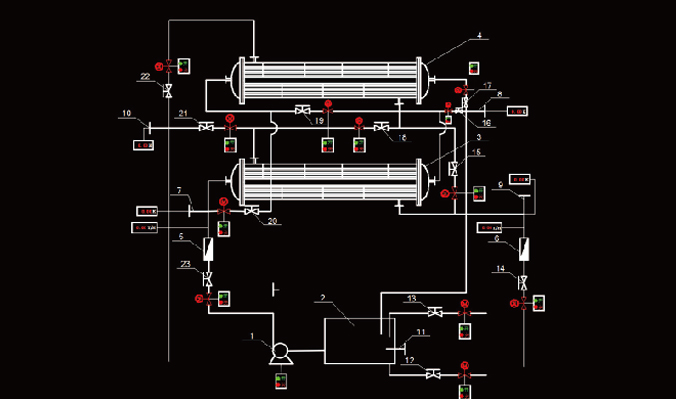 軟件界面上可以顯示實(shí)驗流程CAD圖,實(shí)驗流程圖上可以實(shí)時(shí)顯示待采集儀表數據,可以實(shí)時(shí)顯示和控制泵、閥等 能設備運行狀態(tài)。實(shí)時(shí)顯示待采集儀表數據,可以實(shí)時(shí)顯示和控制泵、閥等智能設備運行狀態(tài)。