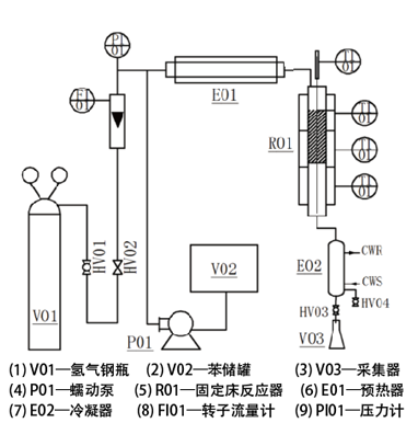 苯儲罐、采集器、蠕動(dòng)泵、固定床反應器、預熱器、冷凝器、轉子流量計、壓力計、智能儀表、嵌入式一體化彩色觸控顯示屏。